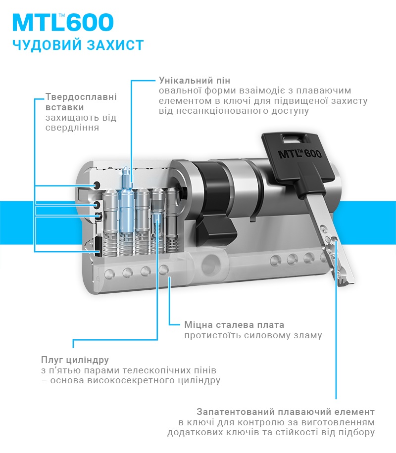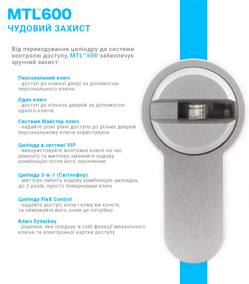 Специфікація: Циліндри MUL-T-LOCK MTL600